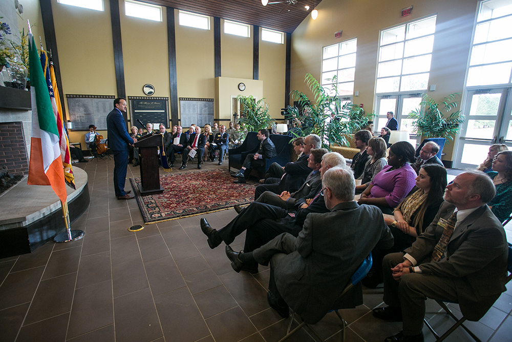 Georgia Southern University welcomed Dr. Leo Varadkar, Minister for Transport, Tourism and Sport in Ireland, on Tuesday, March 18, at a reception in the Eugene M. Bishop Alumni Center to recognize the launch of the Wexford-Savannah Axis research partnership.