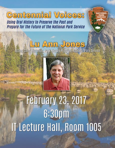 Georgia Southern’s Department of History continues the R. Frank Saunders, Jr. Lecture Series this week with a presentation titled, “Centennial Voices: Using Oral History to Preserve the Past and Prepare for the Future of the National Park Service.” The lecture will be given by Lu Ann Jones, former acting chief historian of the Park History Program, part of the National Park Service, on Feb. 23 at 6:30 p.m. in the IT building lecture hall, room 1005. Jones specializes in oral history research methods and the history of women, labor, agriculture and the American South. During this lecture, she will speak about preserving the past through oral history. The Park History Program preserves and protects our nation’s cultural and natural resources by conducting research on national parks, national historic landmarks, park planning and special history studies, oral histories, and interpretive and management plans. The lecture is free and open to the public, and proof of attendance will be provided. Georgia Southern University, a public Carnegie Doctoral/Research University founded in 1906, offers more than 125 degree programs serving 20,673 students. Through eight colleges, the University offers bachelor’s, master’s and doctoral degree programs built on more than a century of academic achievement. Georgia Southern is recognized for its student-centered and hands-on approach to education. Visit GeorgiaSouthern.edu.