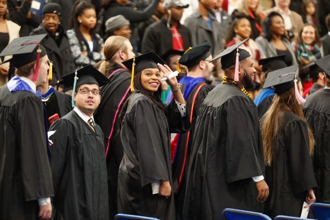 Rain couldn’t dampen the spirits of nearly 1,600 graduates at Georgia Southern University as graduate and undergraduate students were recognized during the Fall 2017 Commencement ceremony today.