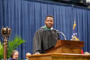 Held in Hanner Fieldhouse, graduates from the University’s eight colleges received their degrees in three different ceremonies before family and friends. Georgia Southern alumnus and 2017 College Football Hall of Fame inductee Adrian Peterson (‘01) spoke to graduates in the 2 p.m. ceremony. “As we walk across this stage, take everything that you learned here, take it,” Peterson said. “You may not need it tomorrow, and you may not need it next week. But somewhere down the line, you’re going to need it. More importantly if you don’t need it, you’re going to come across somebody in your life who will need it. We are Georgia Southern, so aim and strive for the best.” He also encouraged graduates to dream big, set goals, and leave a positive impact on those around them, especially younger generations. “Go back to your communities, and help the young kids, because those are the ones who need it the most,” he said. “Some of those will not be fortunate enough to have a mom, a dad, an uncle an aunt, a grandparent or older brother who will motivate and inspire them to set goals to dream big — so share the wealth.” Georgia Southern’s President Jaimie Hebert, Ph.D., congratulated the graduates for their accomplishments and hard work. “Congratulations, fall graduates,” said Hebert. “Today is your day, and I am so proud of you. Enjoy this moment with family and friends, and know that you make the Eagle Nation very proud.” Georgia Southern University, a public Carnegie Doctoral/Research University founded in 1906, offers 118 degree programs serving 20,418 students. Through eight colleges, the University offers bachelor’s, master’s and doctoral degree programs built on more than a century of academic achievement. Georgia Southern is recognized for its student-centered and hands-on approach to education. Visit GeorgiaSouthern.edu.
