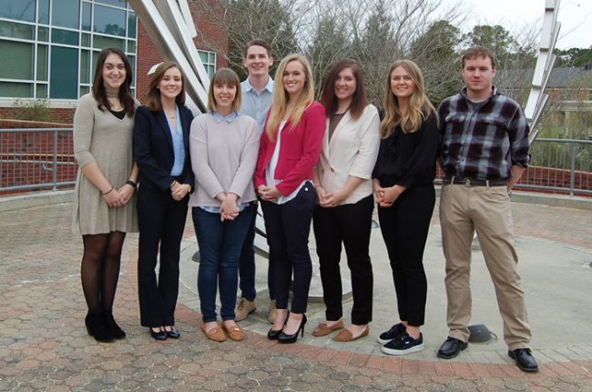 BFSDoArt Graphic Design students received Gold and Silver Awards at the American Advertising Awards (ADDYs) this year. From left: Ellyn Duncan, Cara Carew, Abigail Hutchins, Macintyre Pullen, Quinn Howard, Emily Hudson, Angelica Wallerstedt, and Mitchell Burgess.