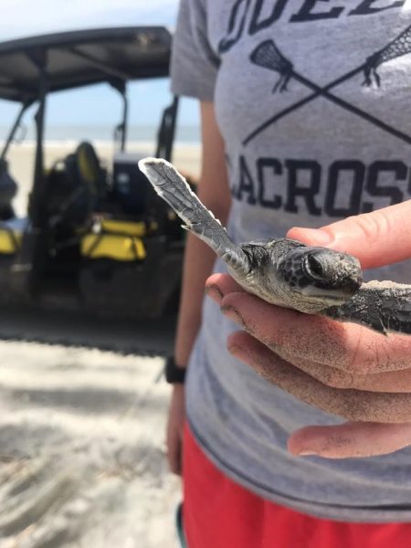 One of the first-ever green sea turtle hatchlings on St. Catherines Island.