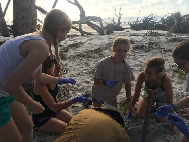 Georgia Southern students remove “straggler” sea turtle hatchlings stuck in a nest.