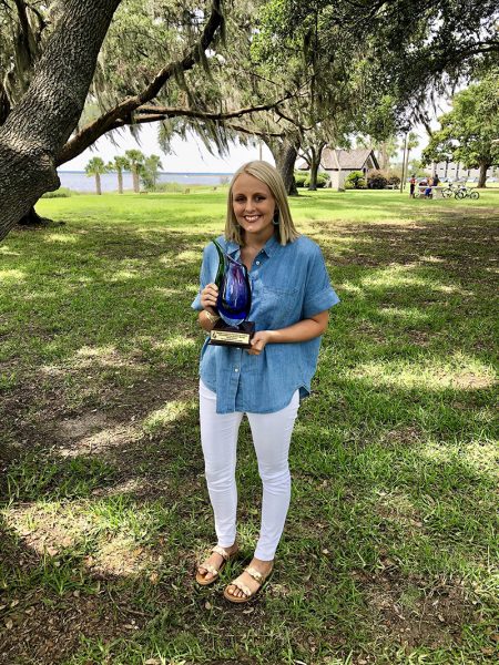 Bailey Waters, a senior majoring in special education, received the Outstanding Student Member award from the Georgia Council for Exceptional Children (CEC) during its annual IDEAS Conference, held June 5-8 on St. Simons Island.“When my picture flashed up on the screen, I couldn’t believe it,” Waters said. “Everyone was so excited. It was great.”Recognized as an undergraduate student who has made outstanding contributions in service to the CEC and to children with exceptionalities, Waters received a commemorative sculpture and will be a nominee for the CEC’s national student award.Waters is the current president of the Georgia Southern University chapter of Student Council for Exceptional Children (SCEC).“We advocate for people with special needs out in the community,” Waters said of the SCEC. “To be a leader in the organization helps me have a voice and make a difference for these students. It’s so much bigger than just the special olympics. It’s a national effort as well to pass laws that help these individuals have equal opportunities and affordances in life.”Waters’ passion can also be seen in her volunteer work outside of the University and SCEC. Last spring, Waters taught dance to students with disabilities at Mattie Lively Elementary School. Serving 15 students each week, she worked with the students to teach motor skills and basic movements by dancing to “Can’t Stop the Feeling” by Justin Timberlake. She also worked with students individually to create solo and group numbers. The dance class ended with a recital in May where the students performed their choreographed numbers.“It was so much fun to be a part of,” Waters said. “I took dance for 10 years and cheered for 10 years, but my knowledge and understanding of the students’ characteristics and how to work with them helped me the most.”A native of Tattnall County, Waters said she knew she wanted to be a teacher from a young age. “My high school was really inclusive, and I was involved with the special education students in my classes,” she said. “I am really passionate about it.”Waters will graduate in spring 2019 and plans to return to Tattnall County to work with elementary school special education.“So many students with disabilities are told that they are incapable or unable, but they aren’t,” Waters said. “Our job is to show them they can. I want to start working with the younger students and bring the fun to the classroom to show them their full capabilities.”