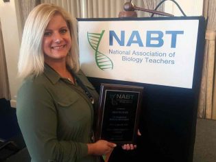 Amanda Glaze, Ph.D., assistant professor of science education at Georgia Southern University, recently received the national Evolution Education Award at the National Association of Biology Teachers (NABT) National Conference in San Diego.