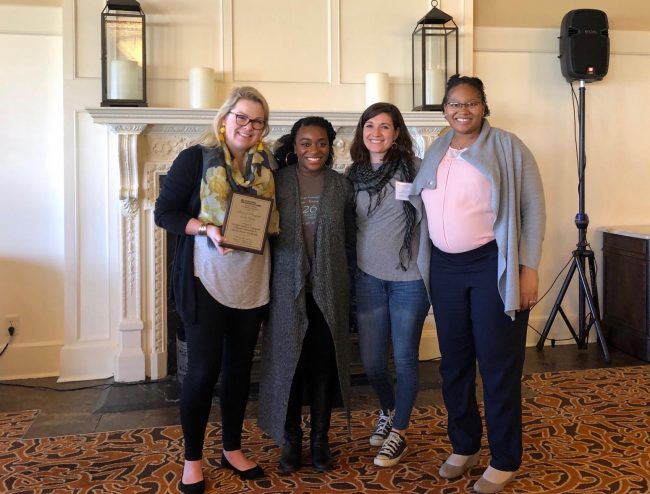 GCCA 26th Annual Conference attendees, from left, Assistant Director/Training Director Katie Bigalke Jones, Ph.D., current counseling center Intern Deonna Kitwana, and counseling staff members Angela Landers, and Nikita Robinson.