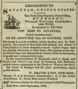 The students conducted primary-source research at archives in Savannah and in Ireland, and a permanent exhibition based on their discoveries is now being developed for the Dunbrody Center, which welcomes more than 110,000 visitors annually. The facility’s principal attraction is a full-scale reproduction of a three-mast, transatlantic sailing ship, the Dunbrody, which operated out of New Ross between 1845 and 1869.