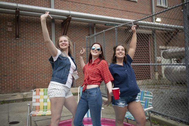 From left, Heather Byler plays Linoleum, Pandora Crumpton plays Betty and Hannah Davis plays Pickles in “The Great American Trailer Park Musical.”
