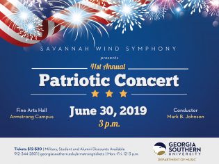 Savannah Wind Symphony will honor active members of the military and veterans during its 41st annual Patriotic Concert on the Georgia Southern Armstrong Campus in Savannah. The concert will be held on June 30 at 3 p.m. in the Fine Arts Auditorium.