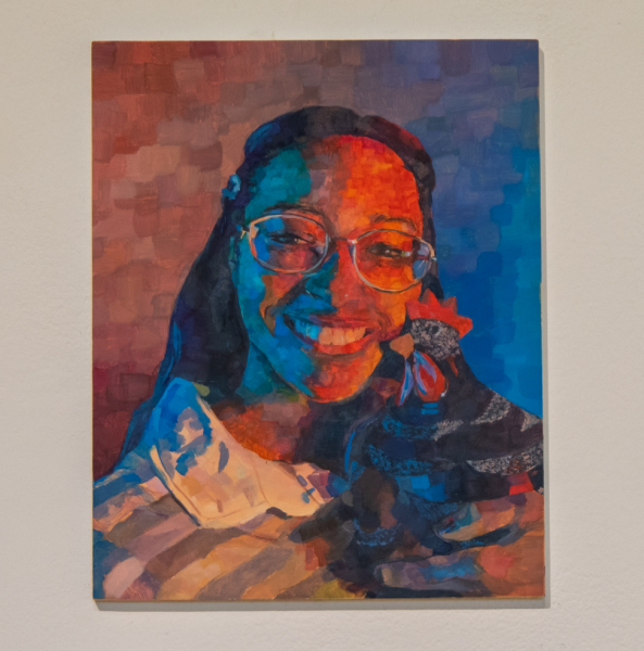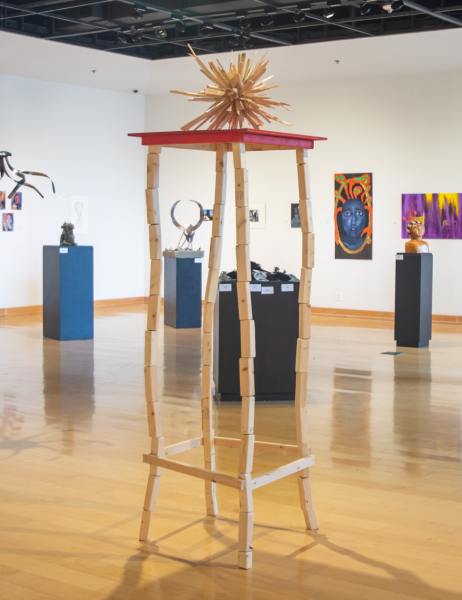 Lou McCall, a studio art senior, was awarded Best in Show for her wooden sculpture “Untitled.” Best 2D was awarded to Imani Ingram, a first-year 2D studio art student, for her oil painting “Self-Portrait.”