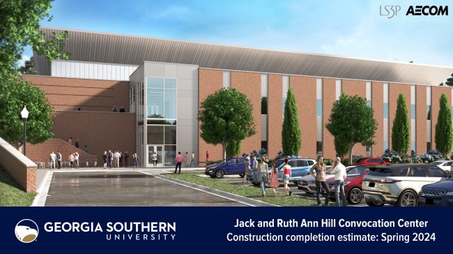 The Jack and Ruth Ann Hill Convocation Center will be the largest event venue space between Savannah and Macon. Serving as the signature building on Georgia Southern’s south campus, it will be located on University-owned land on the southwest side of the intersection of Lanier Drive and Veterans Memorial Parkway (US 301 bypass).