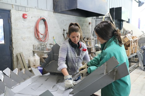 Now, her paper design is being transformed into a large metal sculpture. Each steel sculpture will be powder-coated in a vibrant color to help preserve the work for years of enjoyment.