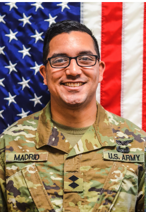 “My dad was a part of the military and later became an officer when I was growing up in El Paso, Texas,” said Madrid. “So I enlisted in the Army a year after high school as an aircraft mechanic. I deployed once to Kuwait and once to Afghanistan and worked my way up to staff sergeant. During that time I learned about the Green to Gold program.”