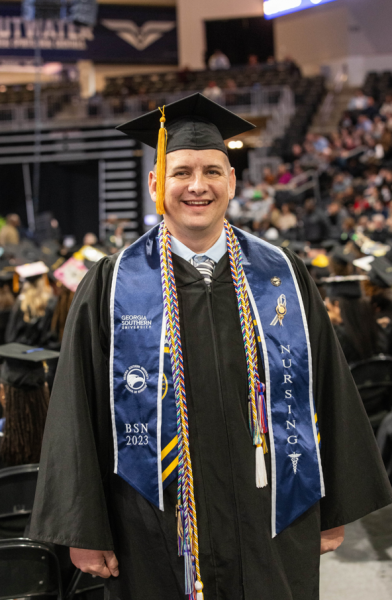 When Wesley Fischer crossed the stage during Fall 2023 Commencement at Georgia Southern University to acknowledge the completion of his degree in nursing, it was a full-circle moment. Just two years prior, Fischer was unsure of his future in school, and at one point, unsure whether he would live.