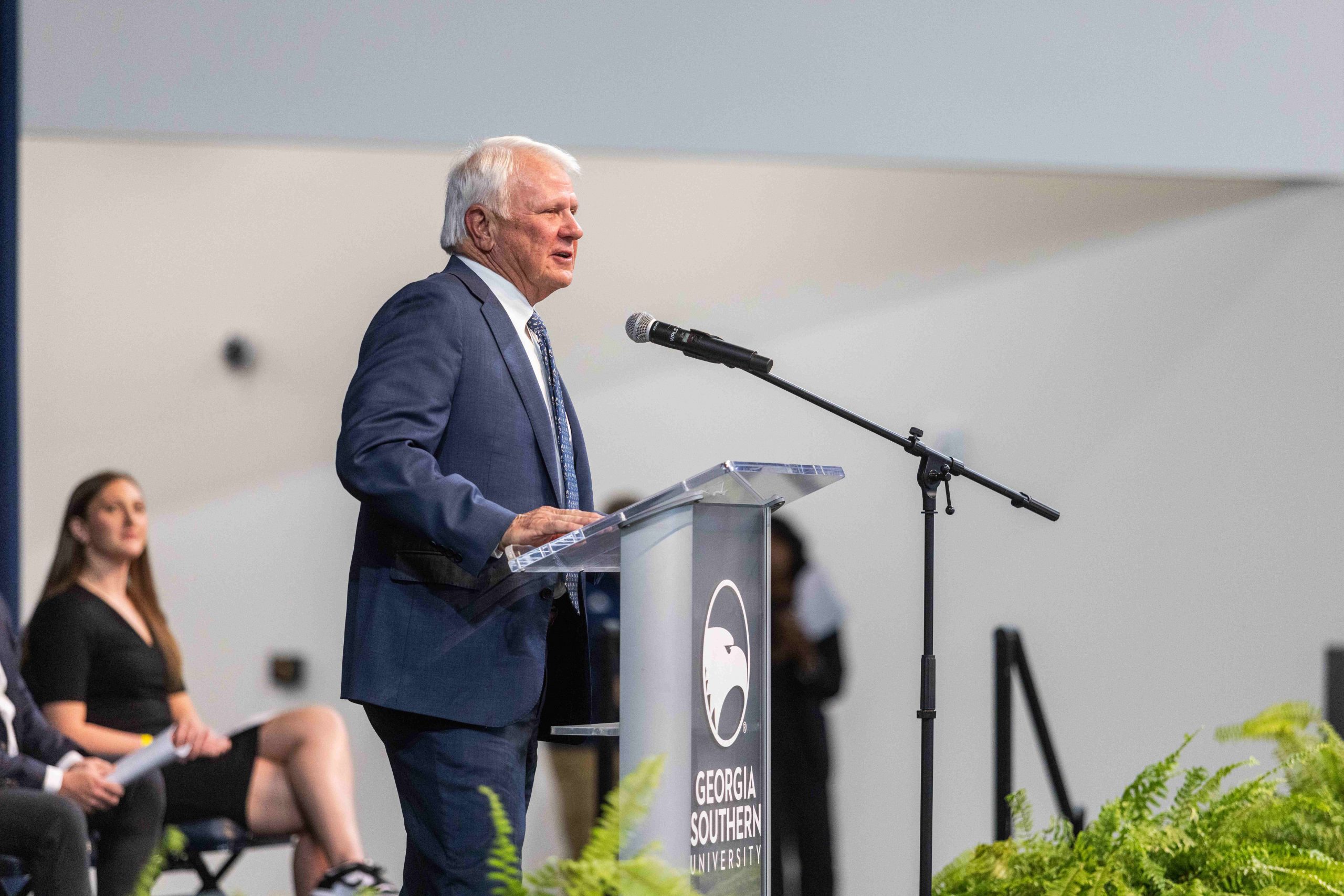 “We’re here to celebrate the great legacy of two individuals who made a difference,” Ga. Rep. Jon Burns enthusiastically shared with the audience. “They were both faithful public servants, because they cared more about their neighbors than they did about themselves. That was very clear. This University and this state could not be what it will be and what it is without the contributions and the foresight of people like Jack Hill. What he endowed this University with was an opportunity for a better life, for a better education for all Georgians and all people who wanted to attend this University. His fingerprints are all over this place. We all know that with the buildings, with the opportunities for these students, for these young people, they’re boundless. Because of the foresight and the work of Jack and Ruth in this place, we are privileged to sit here. Today was a dream of Senator Hill.”