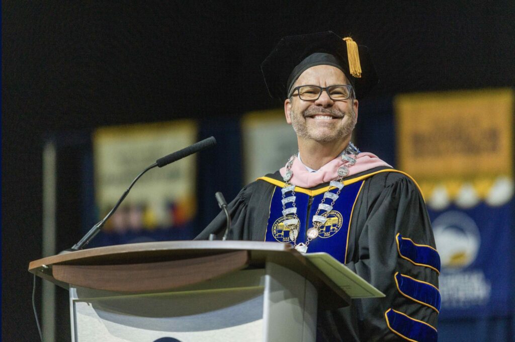 Georgia Southern President Kyle Marrero welcomed the graduates and their guests to the ceremonies, held at the Enmarket Arena in Savannah on Dec. 14, and Allen E. Paulson Stadium in Statesboro on Dec. 17.