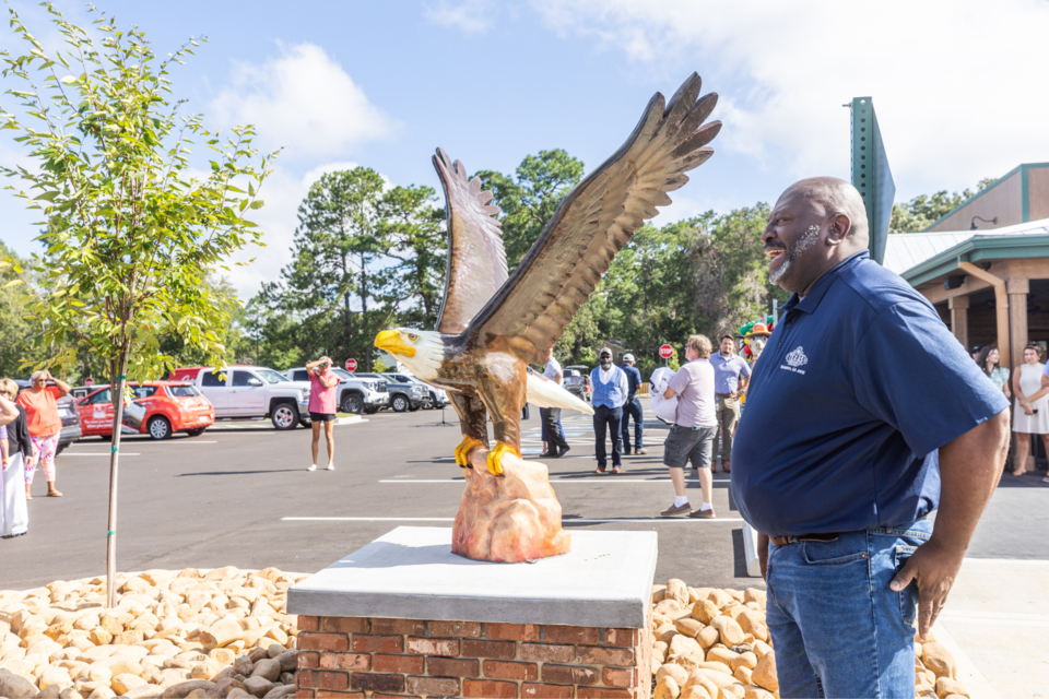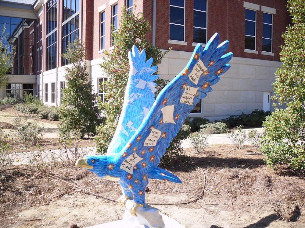 The eagle form, sculpted in a landing position and perched on a chiseled rock, was created by Georgia Southern sculpture professor Marc Moulton and former student Daniel Todd. This ongoing project is proudly sponsored by the College of Arts and Humanities and the Betty Foy Sanders Department of Art.