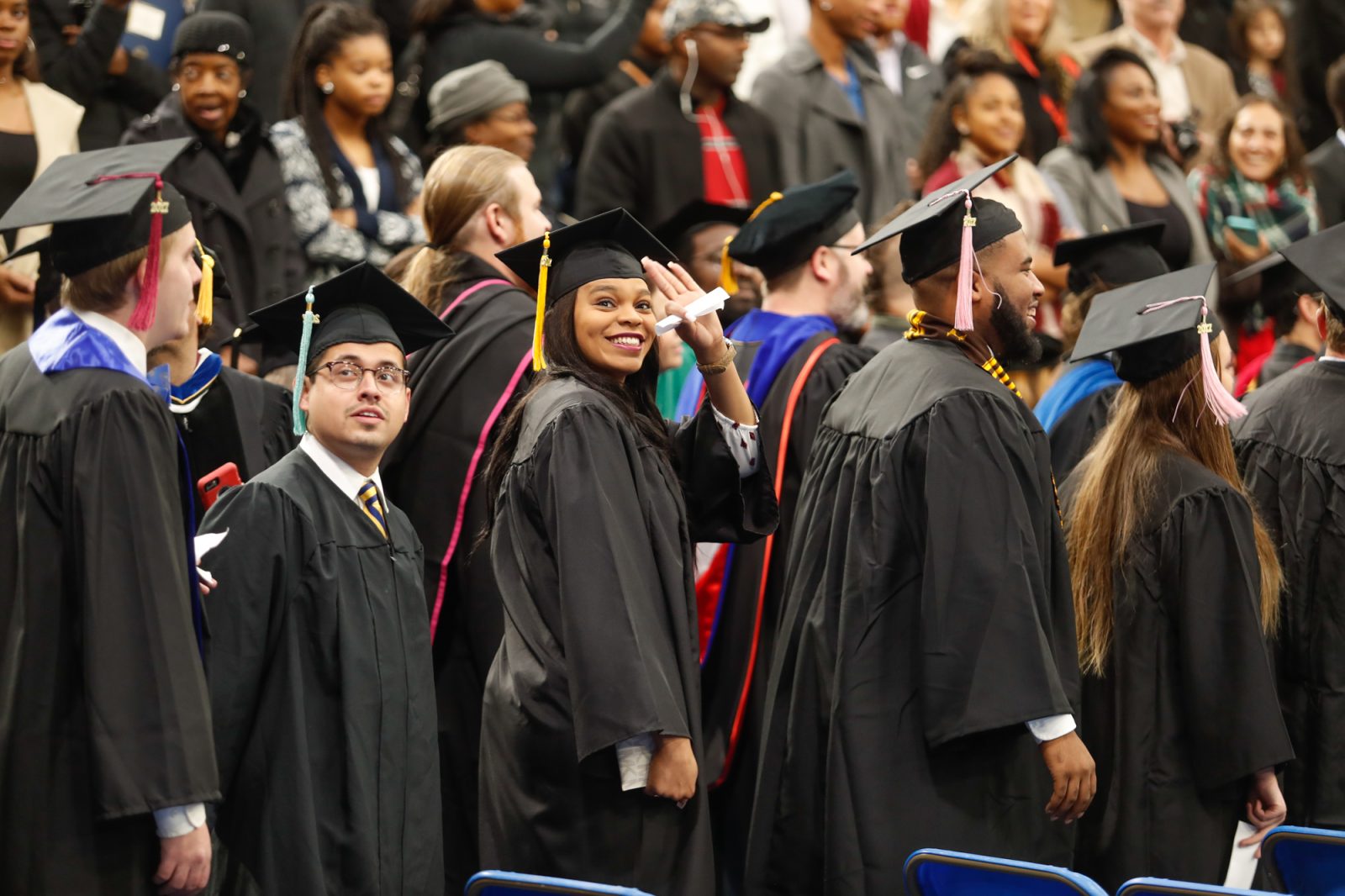 Rain couldn’t dampen the spirits of nearly 1,600 graduates at Georgia Southern University as graduate and undergraduate students were recognized during the Fall 2017 Commencement ceremony today. Georgia Southern alumnus and 2017 College Football Hall of Fame inductee Adrian Peterson (‘01) spoke to graduates in the 2 p.m. ceremony.