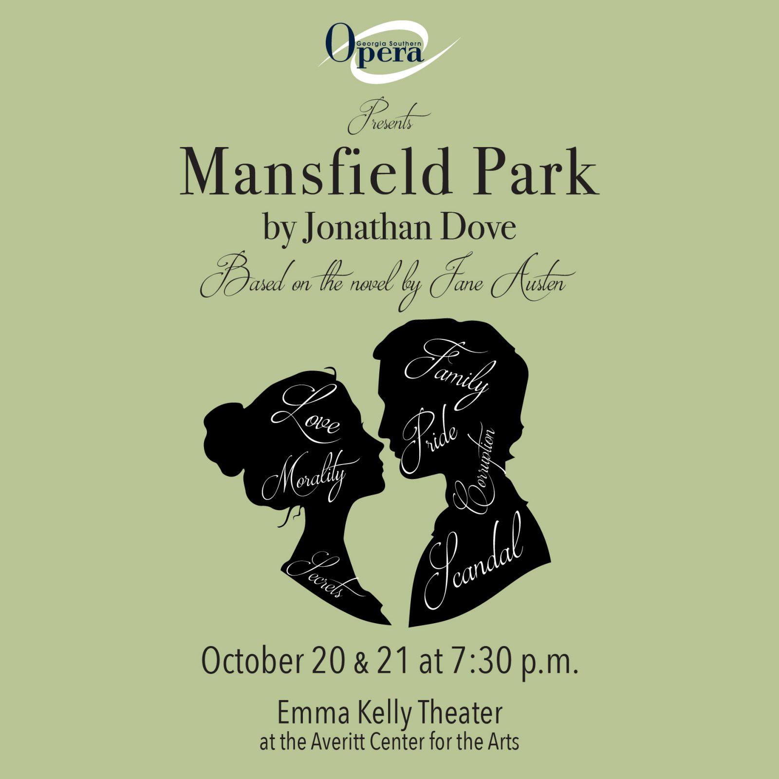 The Georgia Southern Opera (GSO) will present Jonathan Dove’s opera Mansfield Park at the Emma Kelly Theatre at the Averitt Center for the Arts on Friday, Oct. 20 and Saturday, Oct. 21 at 7:30 p.m. Admission is free and open to the public.