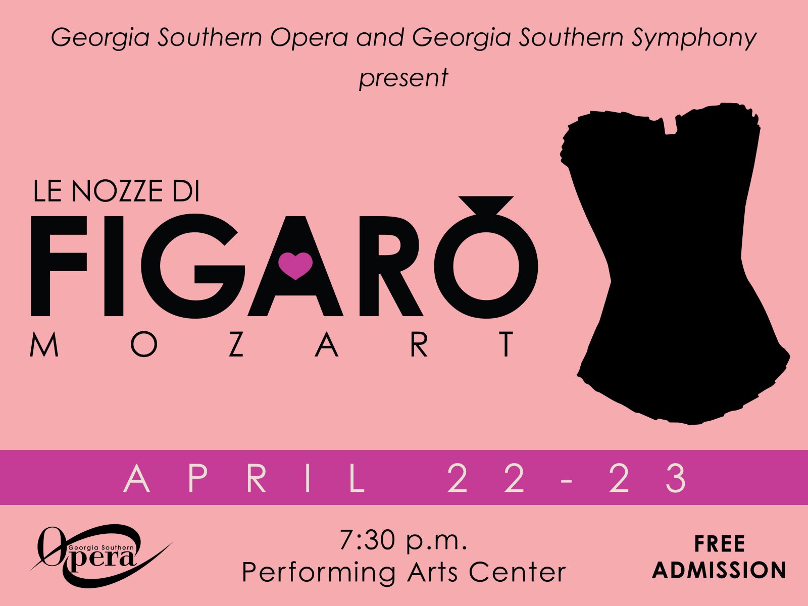 Georgia Southern Opera and the Georgia Southern Symphony will present a full production, Le nozze di Figaro, by Wolfgang Amadeus Mozart on April 22 and 23 at the Georgia Southern Performing Arts Center. Both performances begin at 7:30 p.m. and are free and open to the public.