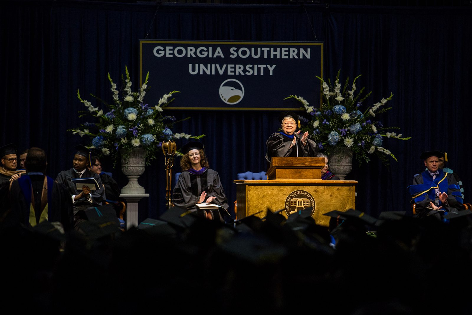 Georgia Southern University today held its 24th annual Fall Commencement at Hanner Fieldhouse. Interim University President Jean E. Bartels, Ph.D., R.N. conferred nearly 1,600 graduate and undergraduate degrees during three separate ceremonies to accommodate the graduating class.
