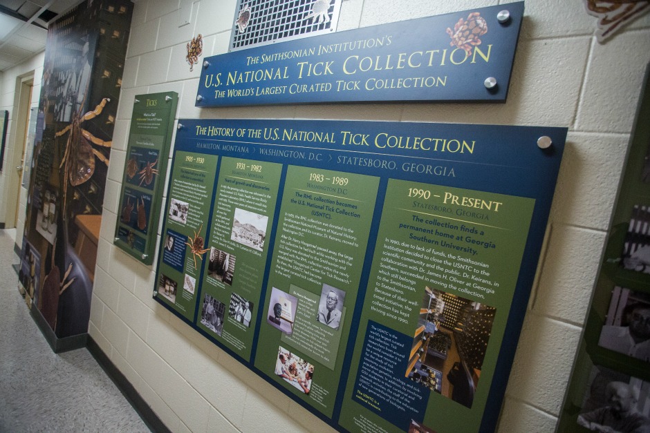With over 125,000 accessioned lots, over one million specimens, their associated data, and an extensive library (reprints, monographs, and books), the U.S. National Tick collection is one of the largest curated tick collections in the World, if not the largest. It belongs to the U.S. National Museum of Natural History (Smithsonian Institution) and has been housed at Georgia Southern University since 1990. The collection contains specimens from all continents, most of the approximately 860 known species of ticks, and a quarter of the primary tick types.