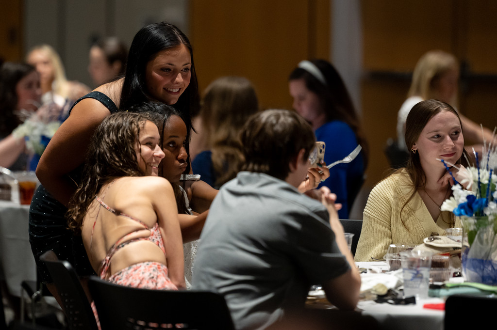 A group of Georgia Southern students celebrate their CRI Club sports award.